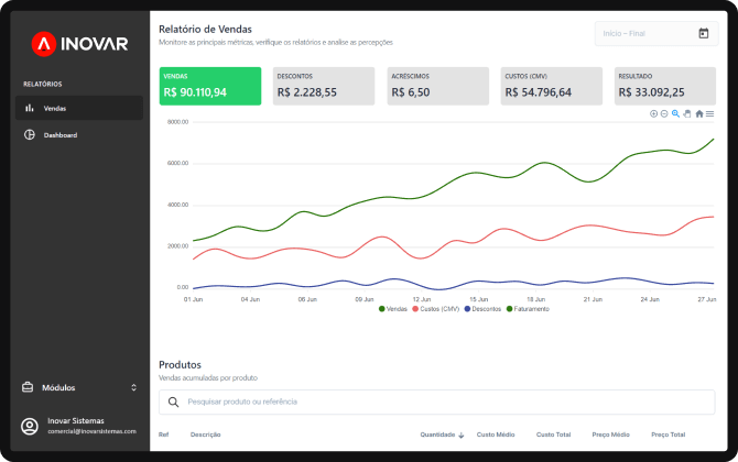 Acompanhe seus resultados por produtos e por